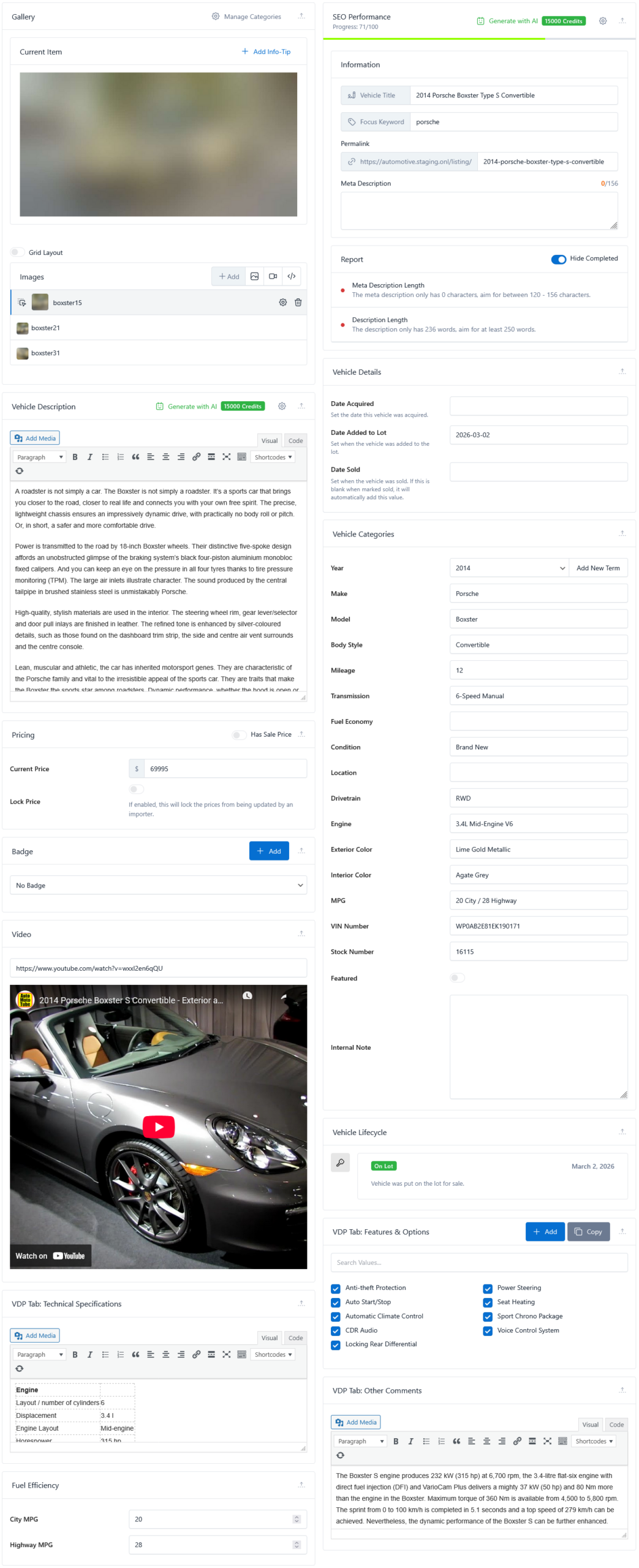 Add features, videos, and detailed information to create more engaging and informative listings for potential buyers.